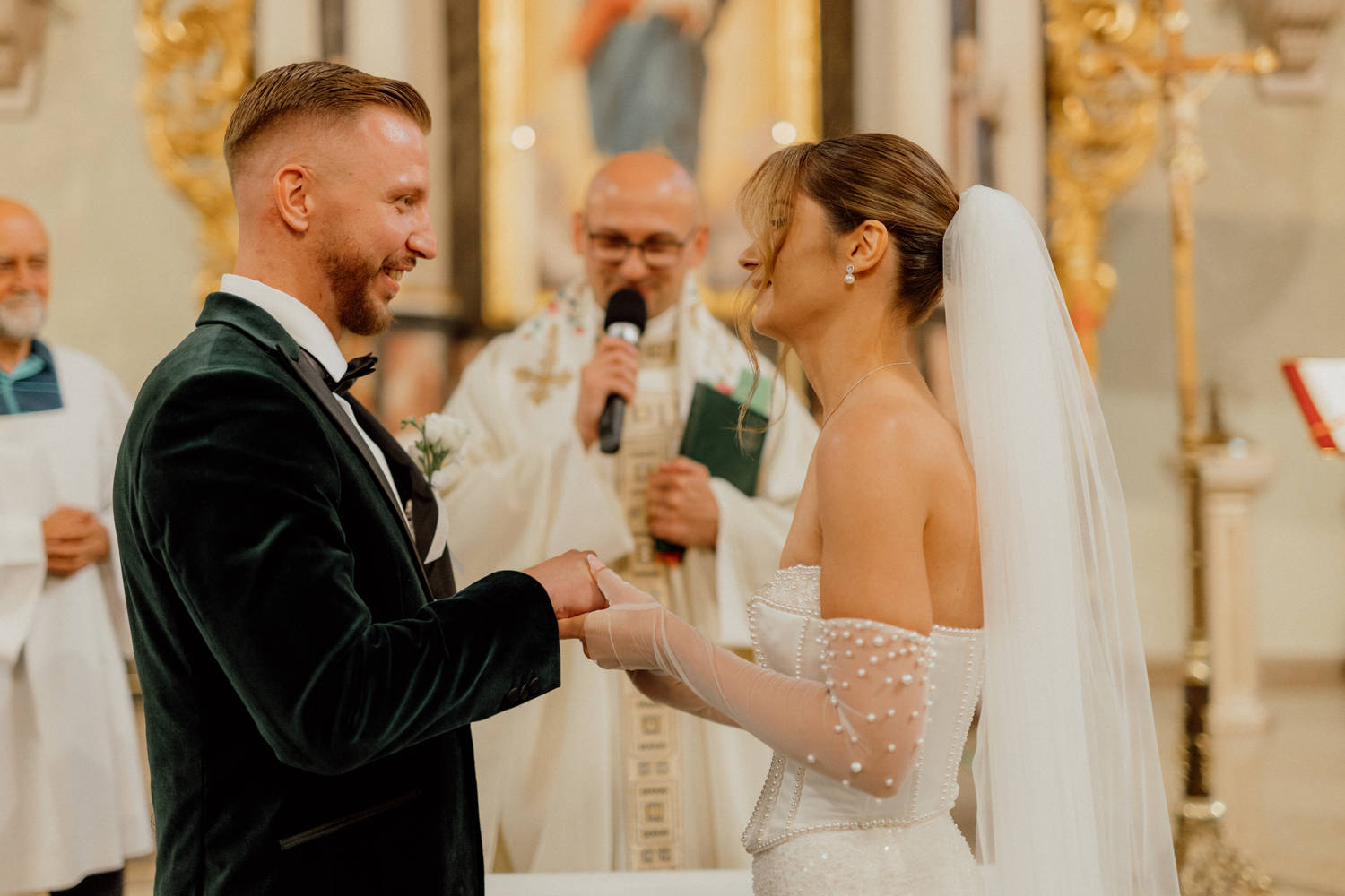 Dzień ich ślubu był pełen emocji i szczerych momentów. Justyna zachwycała delikatnością i uśmiechem, a Krzysztof nie krył wzruszenia, gdy zobaczył ją po raz pierwszy w sukni ślubnej.